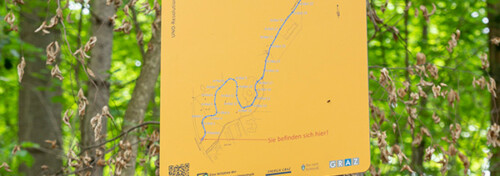 Der Grazer Menschenrechtsweg im Leechwald ist ein Projekt der Kulturvermittlung Steiermark. 30 Tafeln erinnern an die wichtigsten Artikel der Europäischen Menschenrechtskonvention (EMRK).